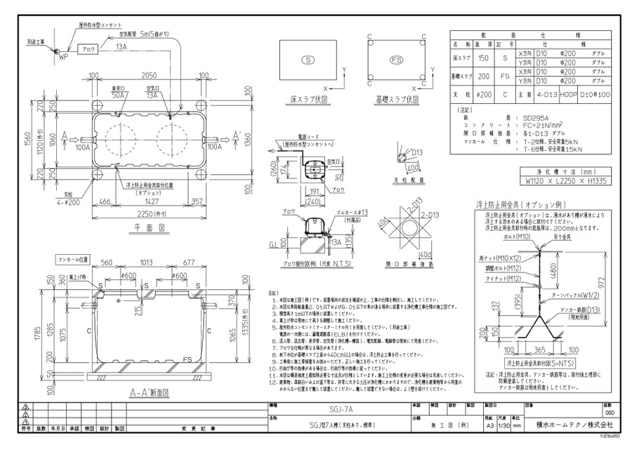 【施工図】SGJ-7 7人槽(支柱あり・標準)